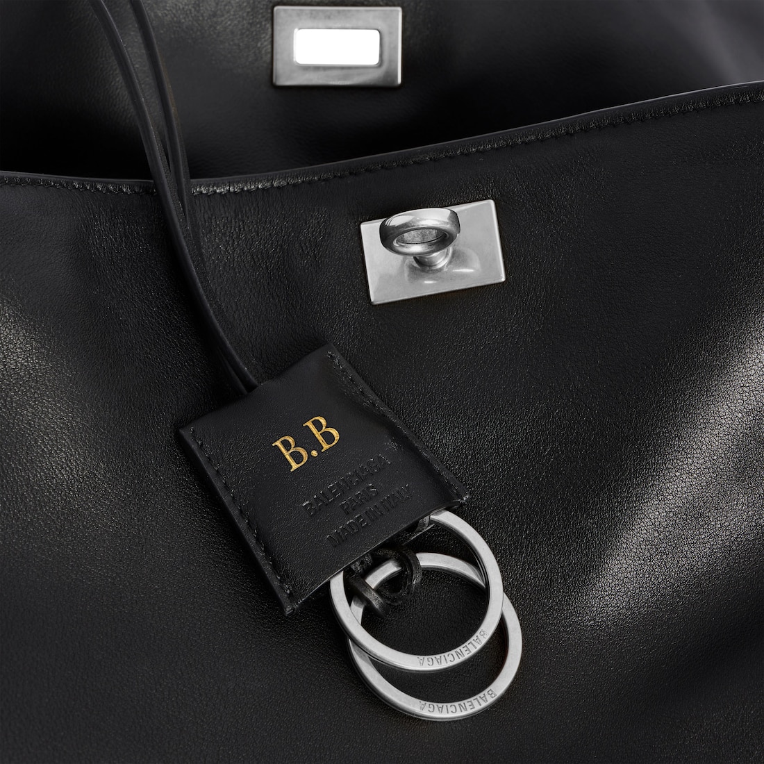 Rodeo Handbag Small in black smooth calfskin, aged-silver hardware