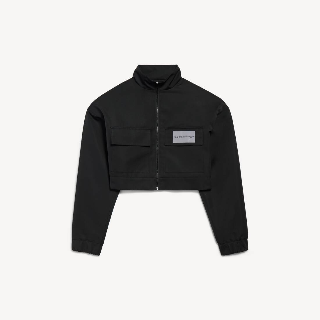 Crop-Trainingsjacke aus technischer Faille in Schwarz