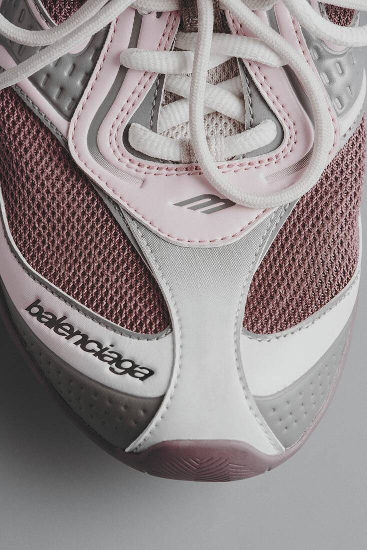 Ein doppeltes Schnürsystem, das sich um das gesamte Obermaterial zieht, und ein Grip-Detail, das sich um die Laufsohle legt, setzen ein starkes Statement und erzeugen einen Second-Skin-Effekt, der mit dem Fuß der Trägerin oder des Trägers zu verschmelzen scheint. Stark strukturierte Elemente sind mit dem 3B-Sport-Icon und Balenciagas charakteristisch sichtbarer Schuhgröße geprägt, einem emblematischen Detail des Hauses. Eine Ballerina-Version interpretiert die Elemente des Sneakers in einer schmaleren, tiefer ausgeschnittenen Silhouette neu und führt das Universum der Luxusschuhe in einer filigraneren Form weiter.