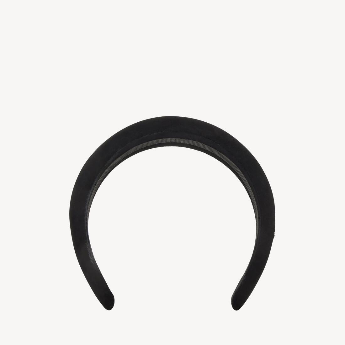 Der Holli Haarreif aus schwarzem Samt und silberglänzendem Messing ist in Look 28 der Balenciaga Winterkollektion 25 zu finden.