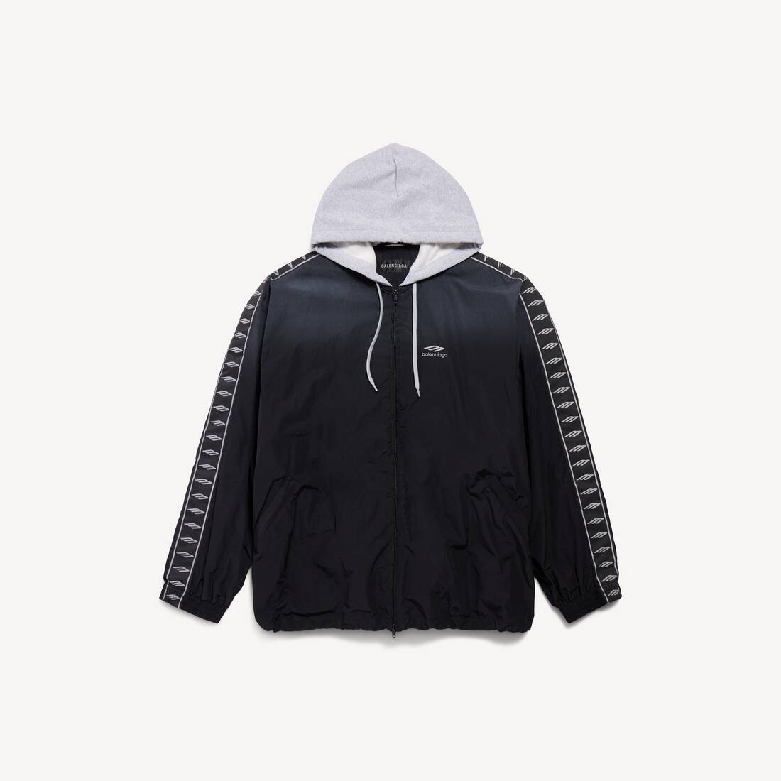 Stripe Trainingsjacke Große Passform aus technischer Baumwollpopeline in Schwarz und Grau