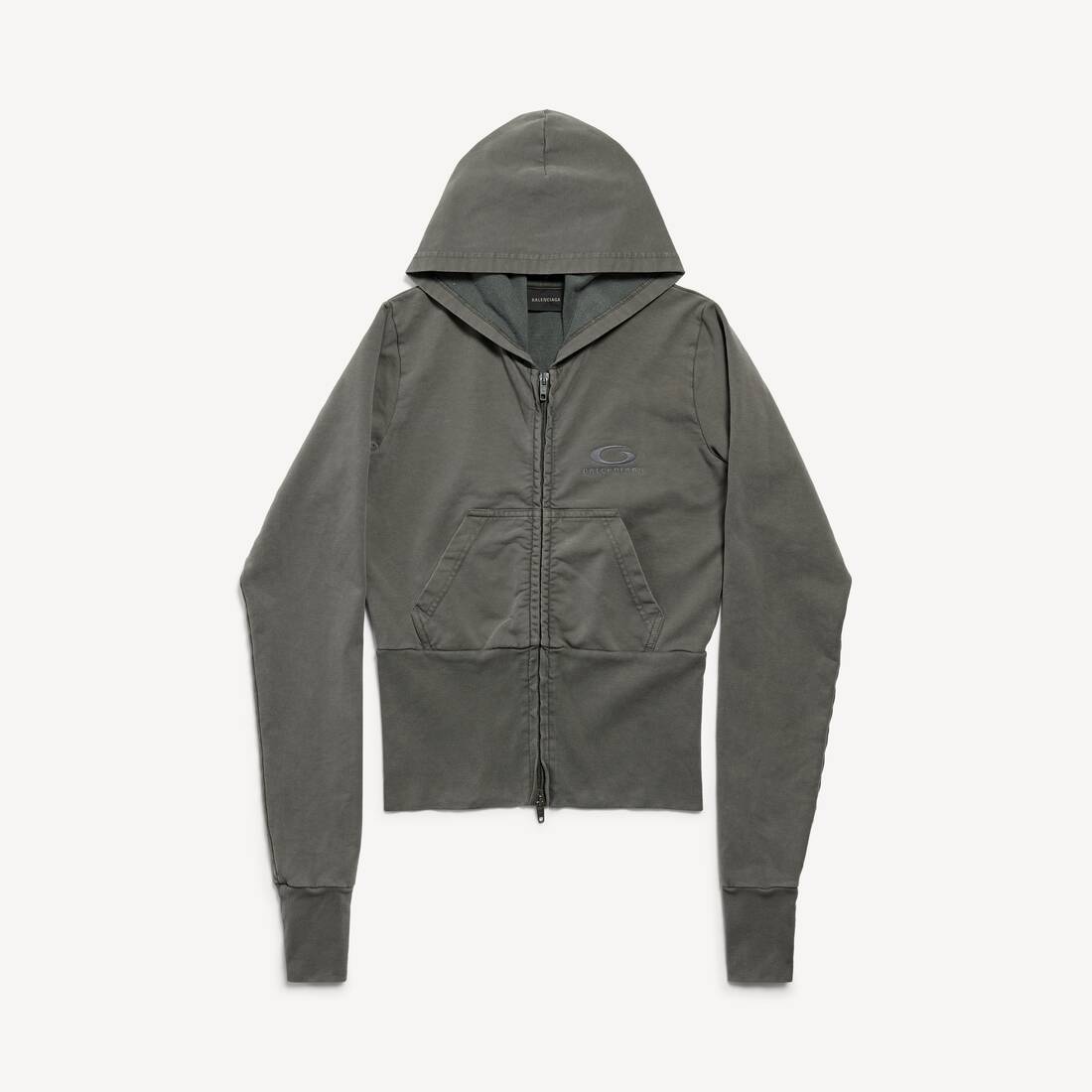 Loop Sports Icon High Rib Zip-Up Hoodie in faded grey light stretch fleece for Women