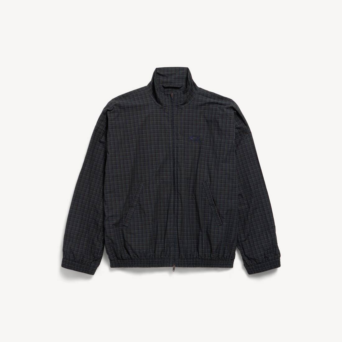 Tailored Tracksuit Jacket in navy and dark green micro tartan poplin