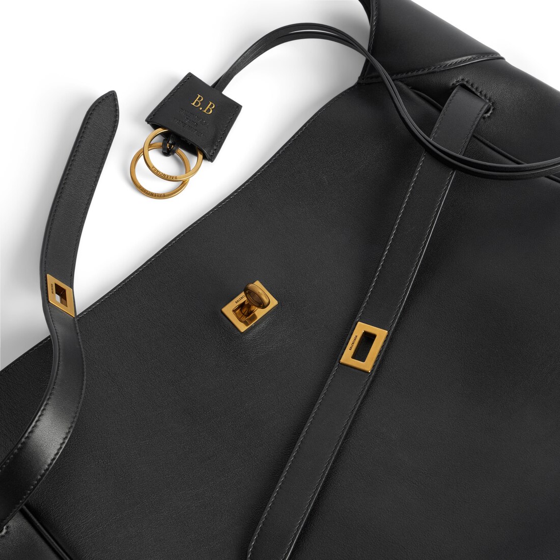 Bel Air Hobo Bag Large in black smooth calfskin with aged-gold hardware is from looks 18 and 20 of Balenciaga Winter 24 Collection.
