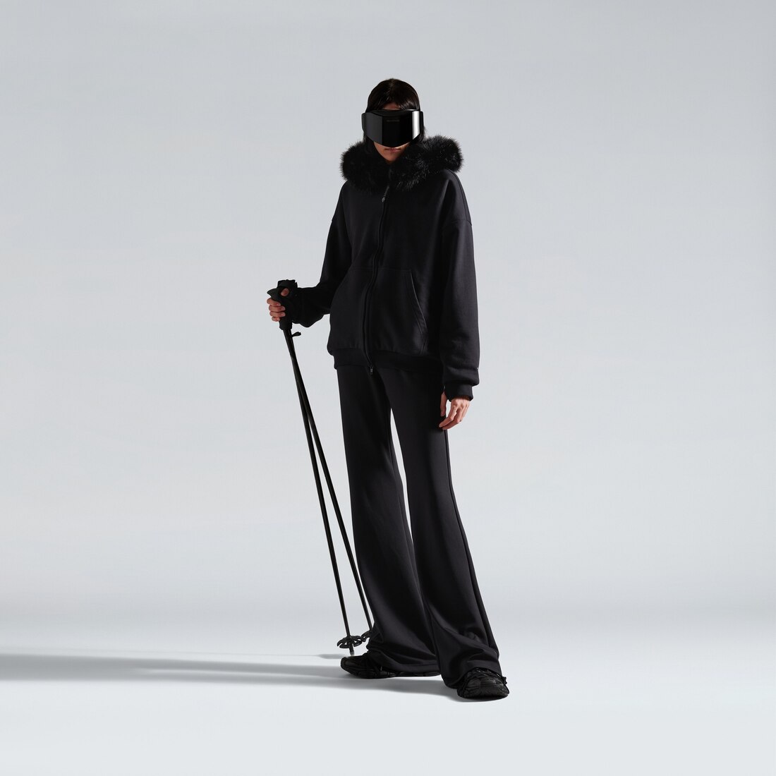 Women's Fluffy Zip-up Hoodie in Washed Black