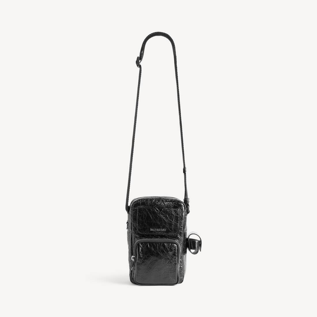 Superbusy Vertical Crossbody Bag in black Arena lambskin, aged-silver hardware