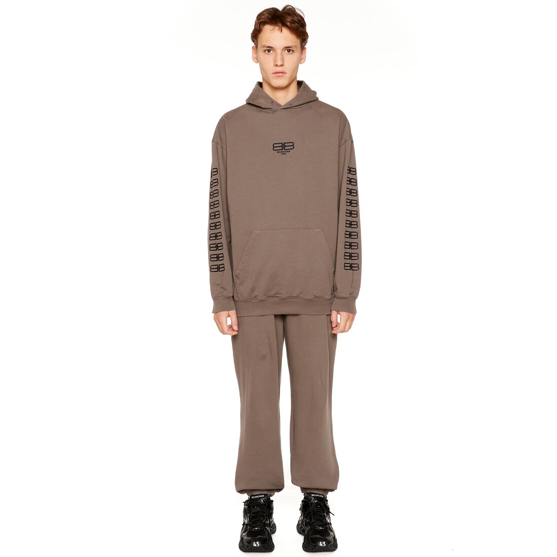 BB Paris Icon Hoodie Medium Fit in warm grey and black medium curly fleece