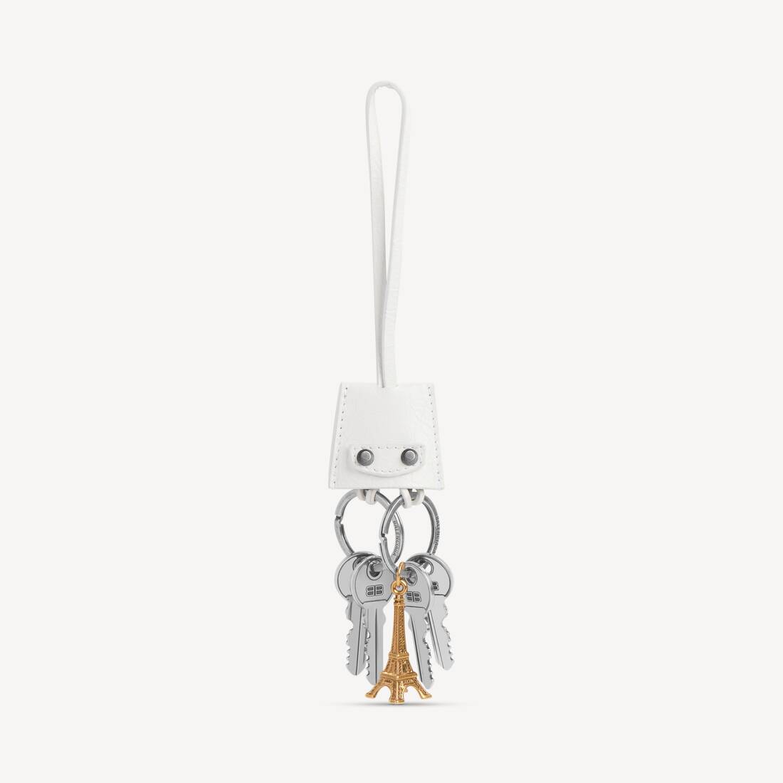 Le City Charm Eiffel in optic white Arena lambskin, aged-silver hardware
