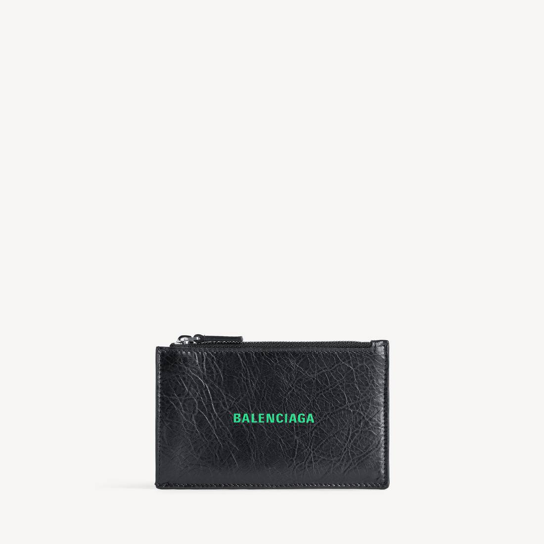 (Tax included)Cash Large Long Coin And Card Holder in black and vivid green Arena lambskin