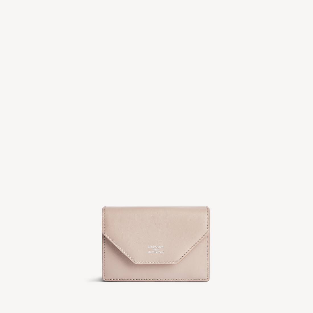 (Tax included)Envelope Mini Wallet in sesame smooth calfskin with contrasting suede pink lining