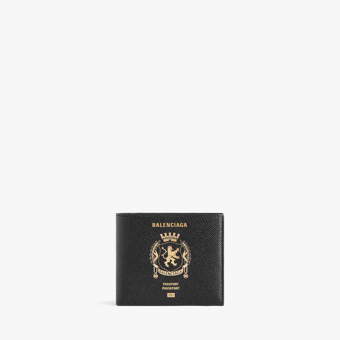 (Tax included)Passport Square Folded Wallet in black semi matte soft textured calfskin