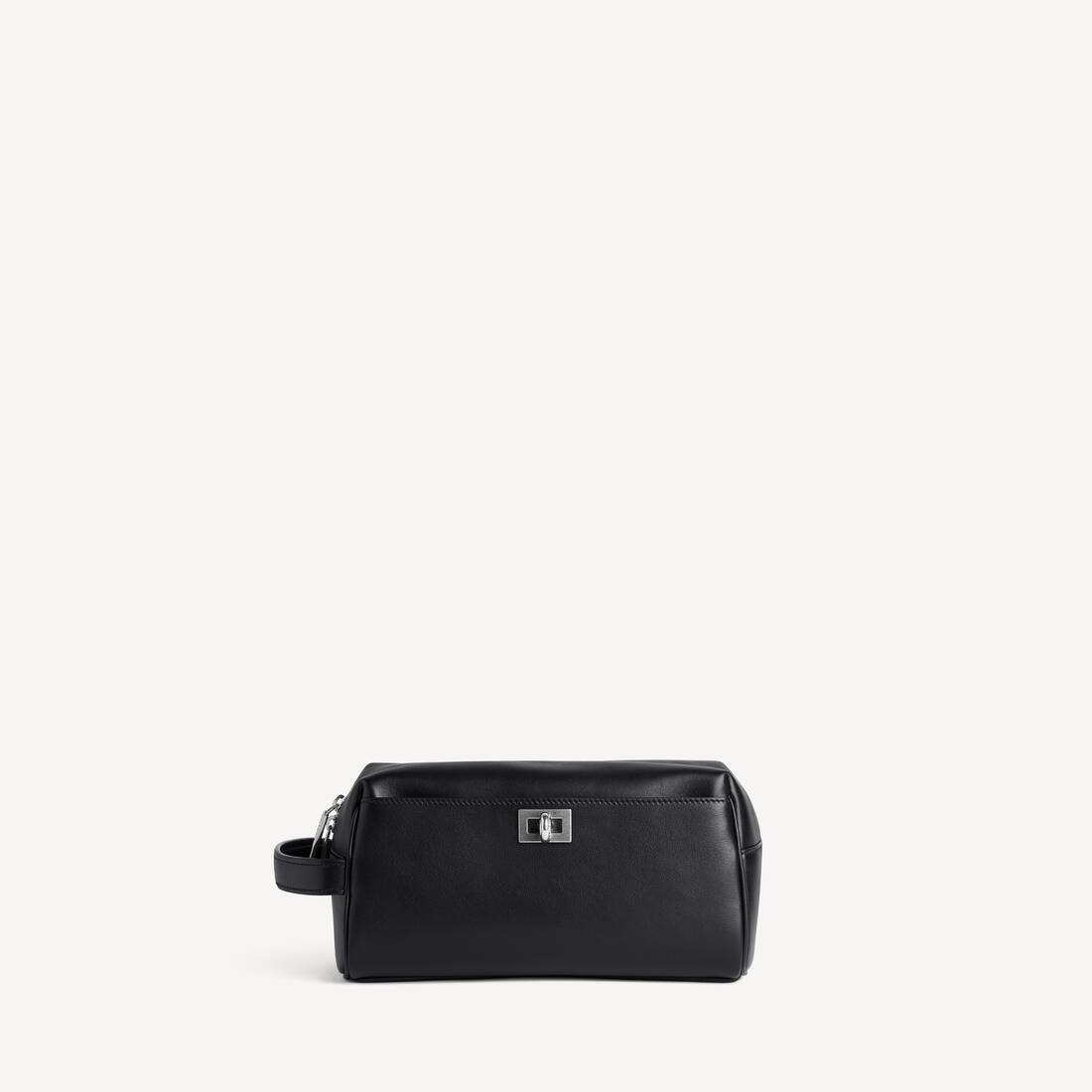 (Tax included)Rodeo Toiletry Pouch in black smooth calfskin, aged-silver hardware