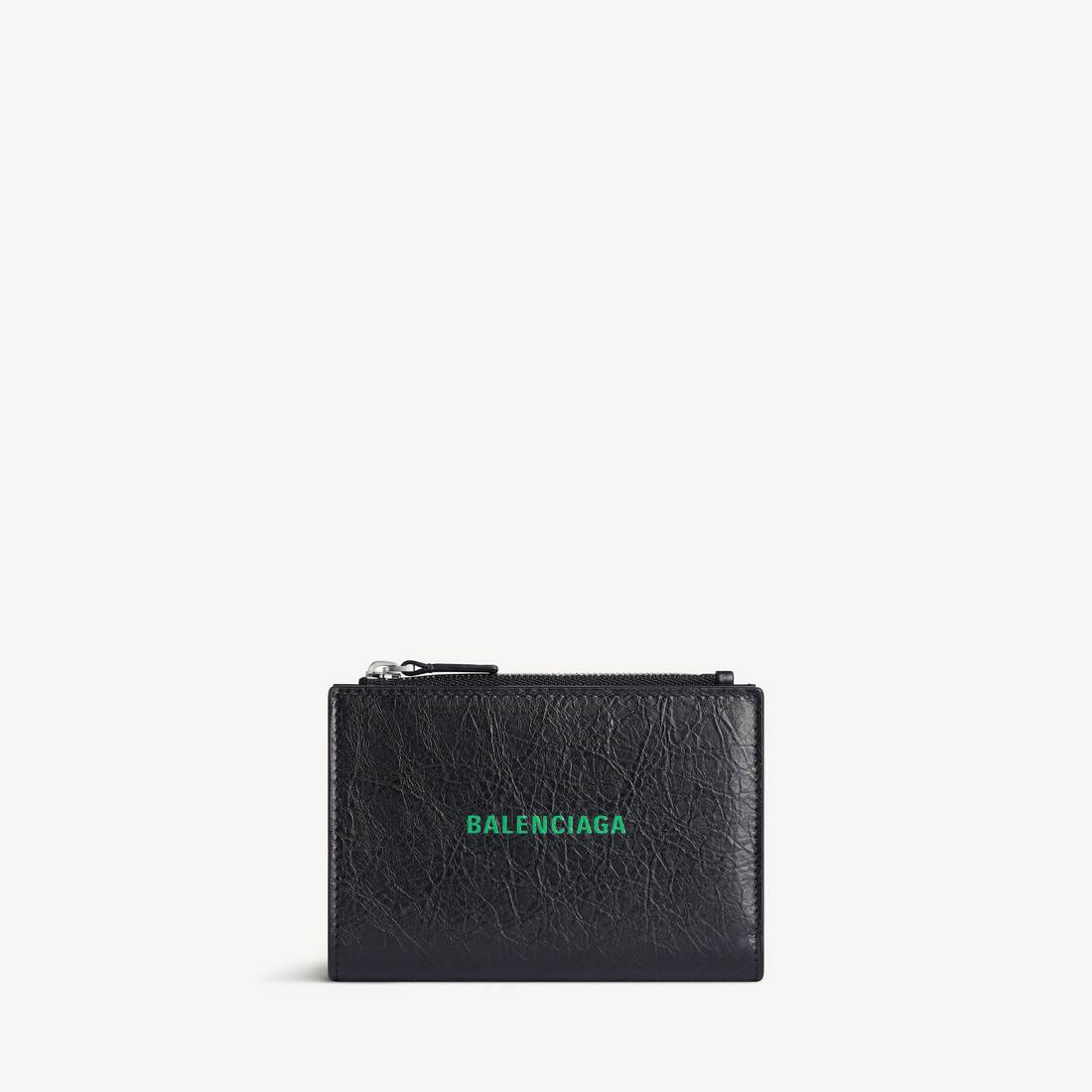 Cash Folded Vertical Card Holder in black and vivid green Arena lambskin