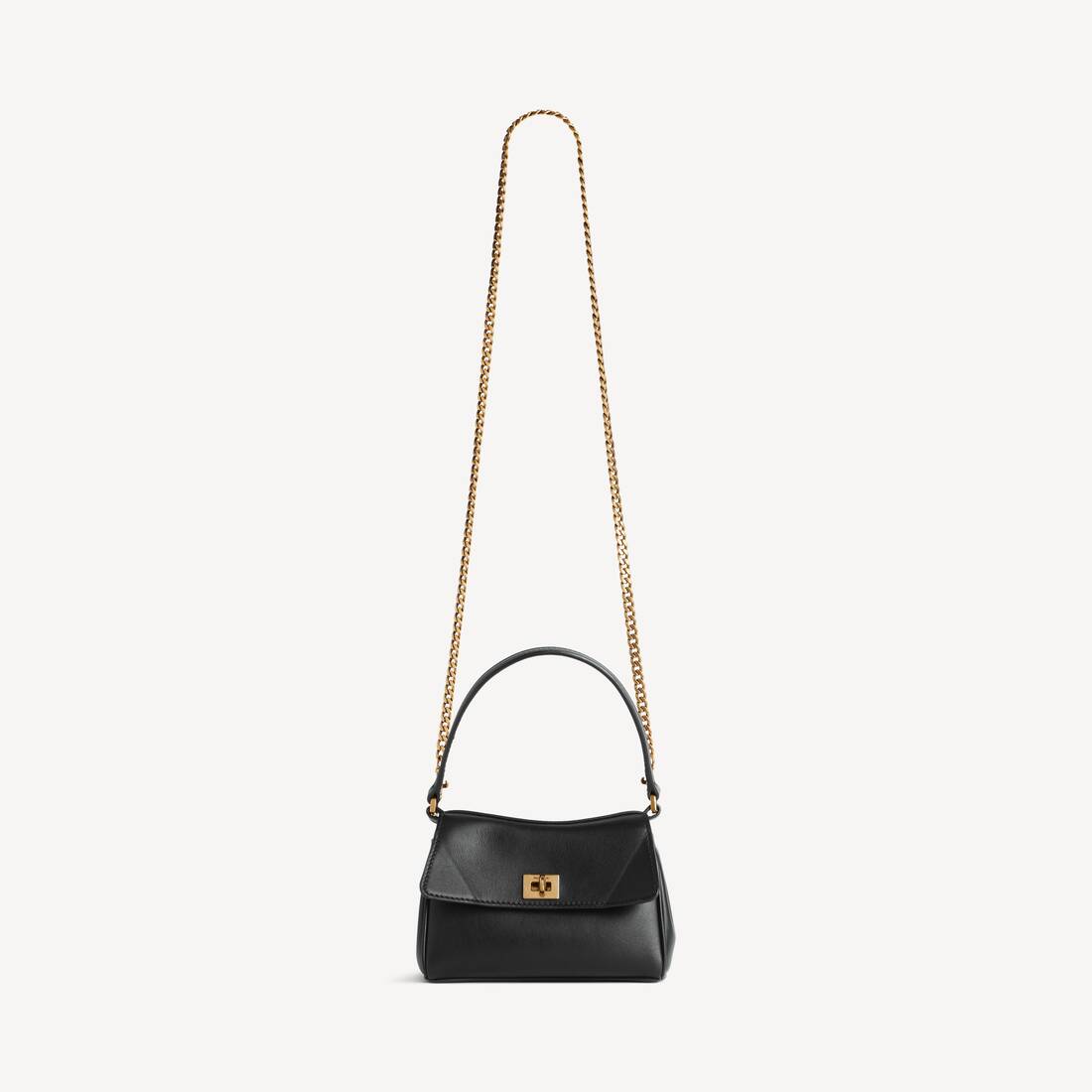 Rodeo Bag With Chain Nano in black smooth calfskin, aged-gold hardware