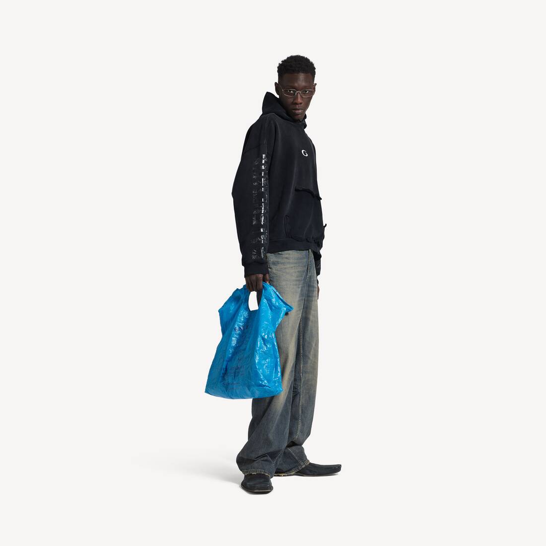 Men's Transparent Tape Ripped Pocket Hoodie in Faded Black/white