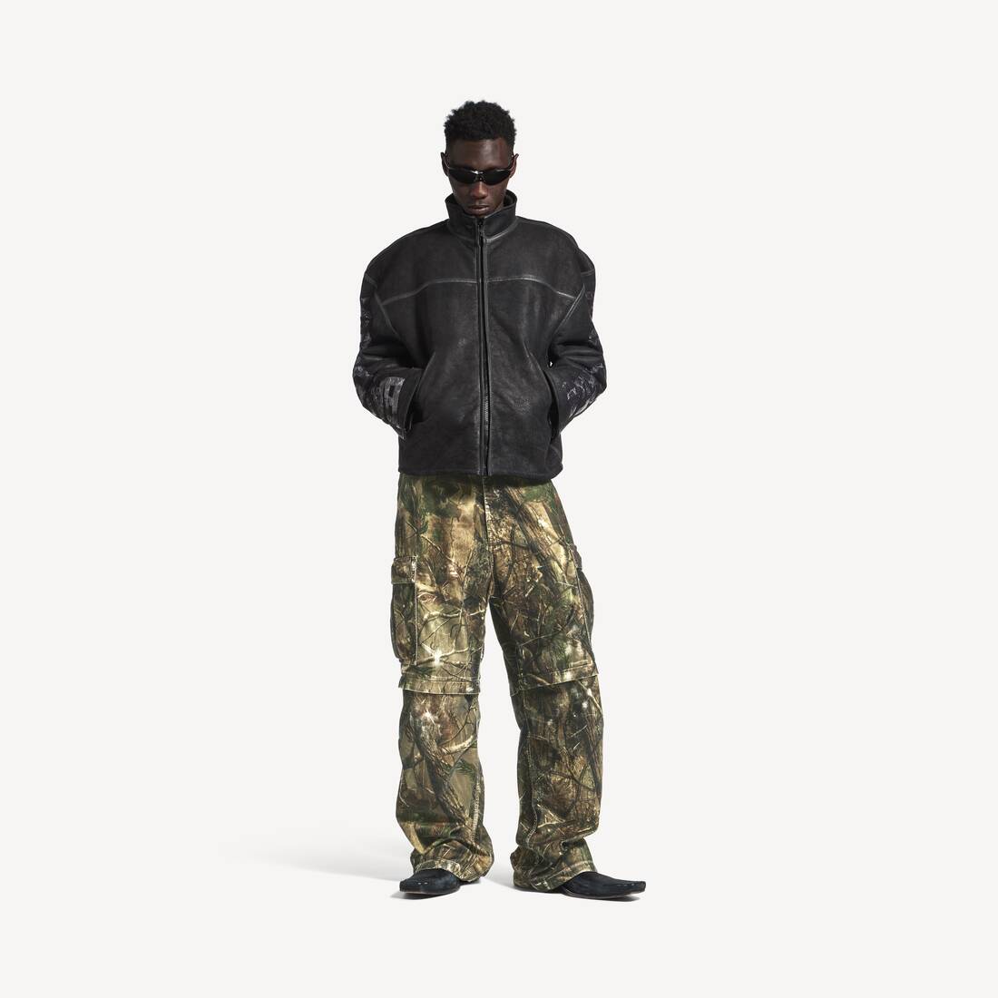 Baggy Cargo Pants in brown Feuillage Camo flocked cotton for Men