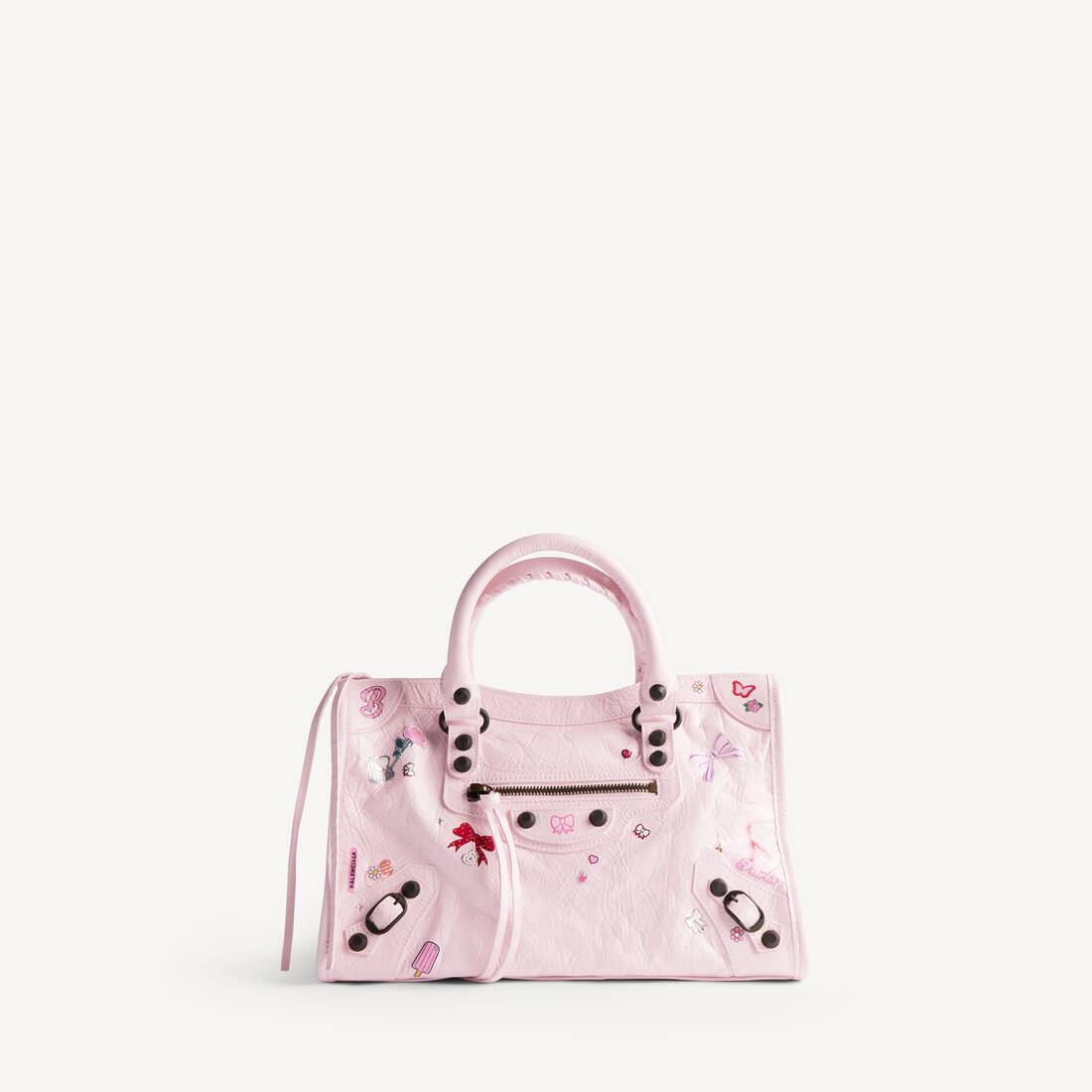 Le City Bag Small in petal pink and multicolor cute stickers printed Arena lambskin, brass hardware
