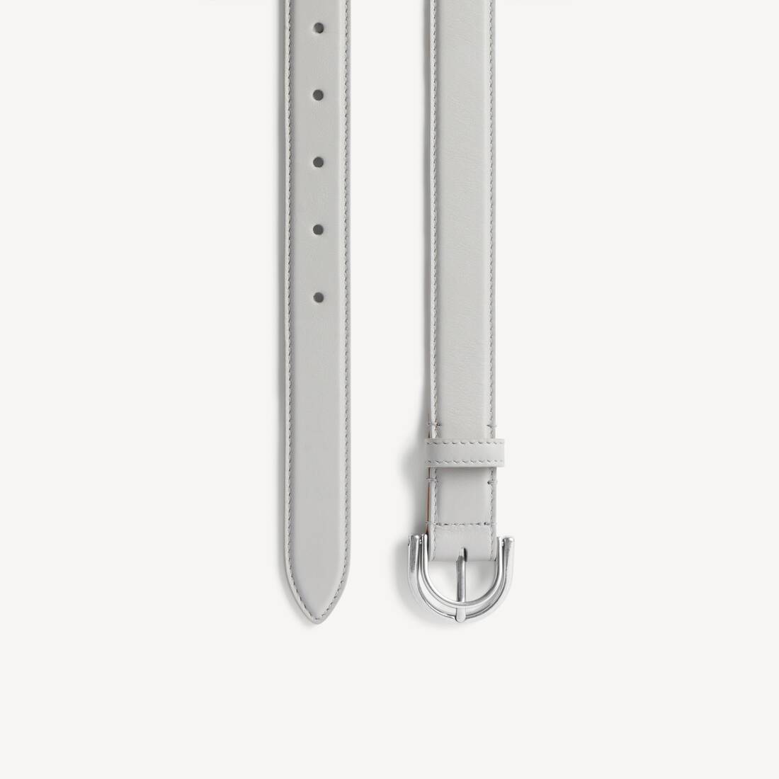 Rodeo Belt in light grey smooth calfskin, aged-silver hardware