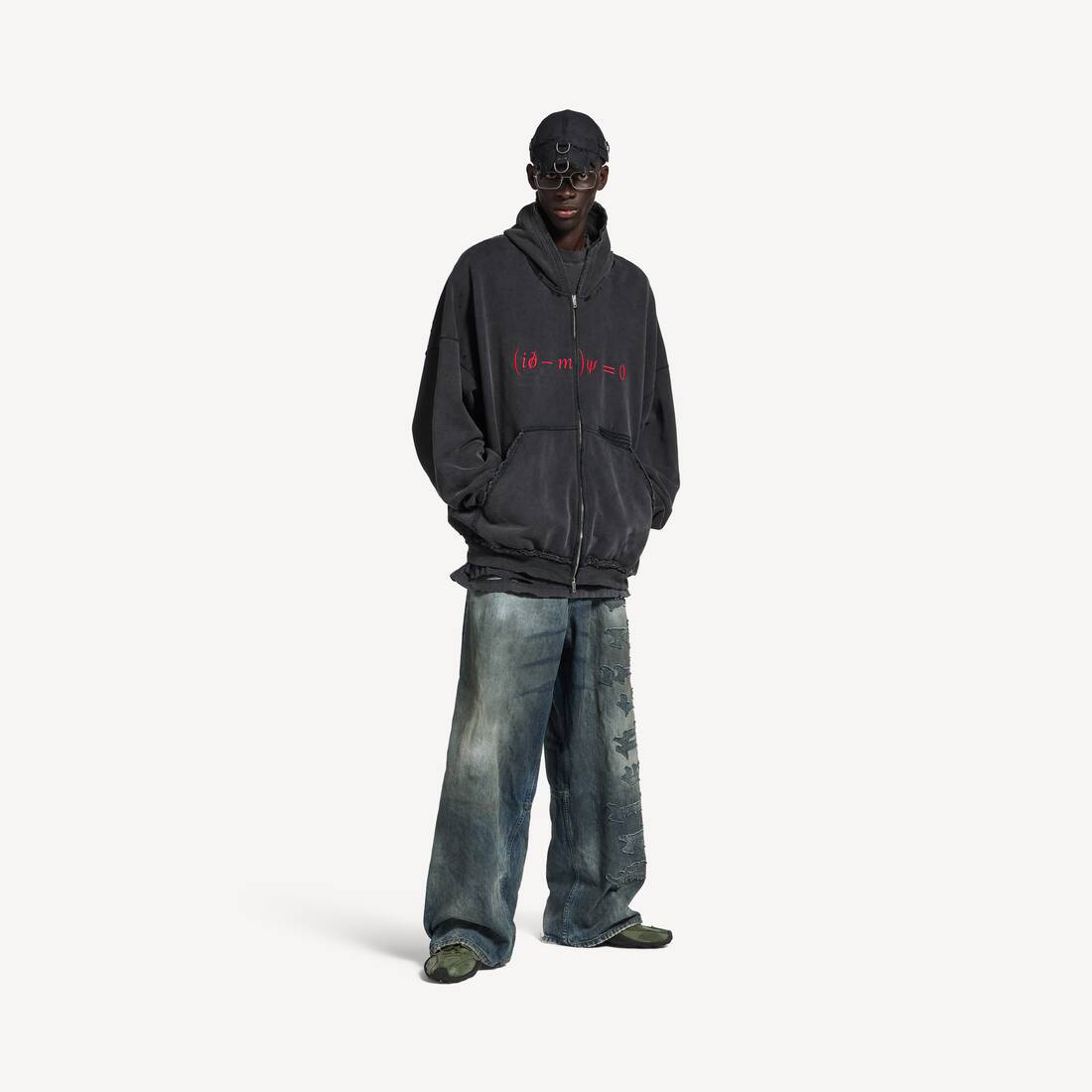 Men's Dirac Equation Pulled Zip-up Hoodie Large Fit in Washed Black/red