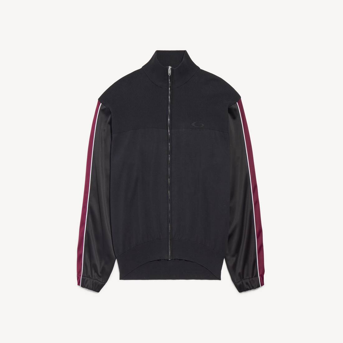 • Hybrid design: tracksuit-style sleeves and classic knit body