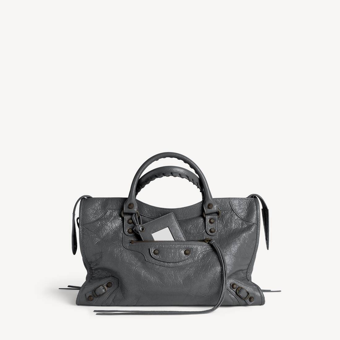 Le City Bag Medium in volcanic rock Arena lambskin, brass hardware
