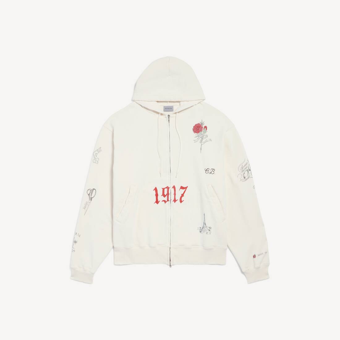 Men's Tattoo Oversized Zip-up Hoodie in Cream