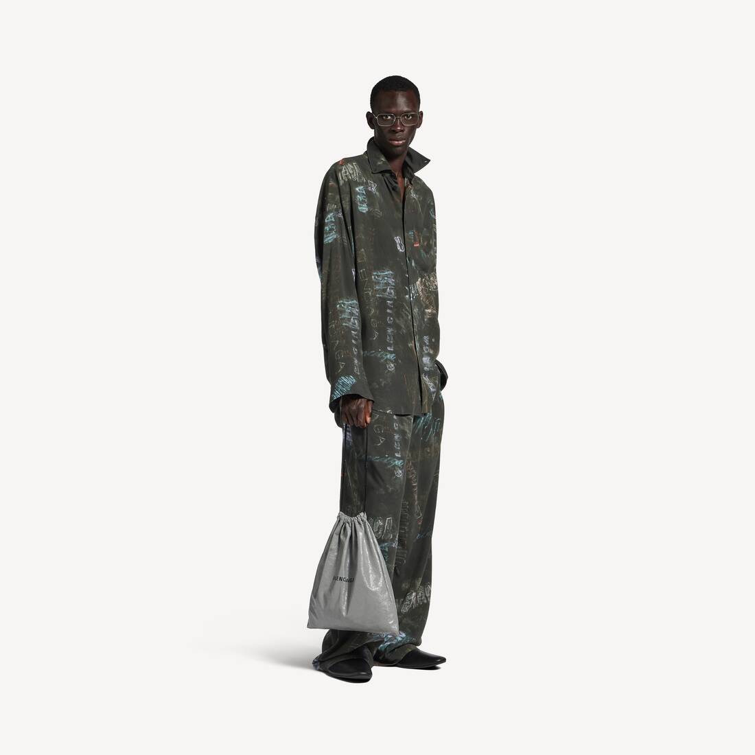 Washed Crayon Allover Long Sleeve Cocoon Shirt in washed black viscose poplin