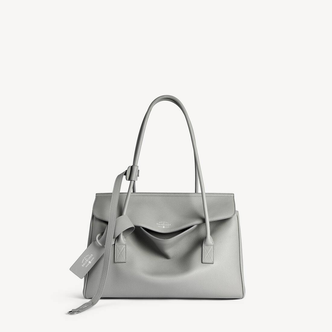 Bolso Carry All Carrie Pequeño de piel de becerro granulada gris Balenciaga, elemento plateado envejecido