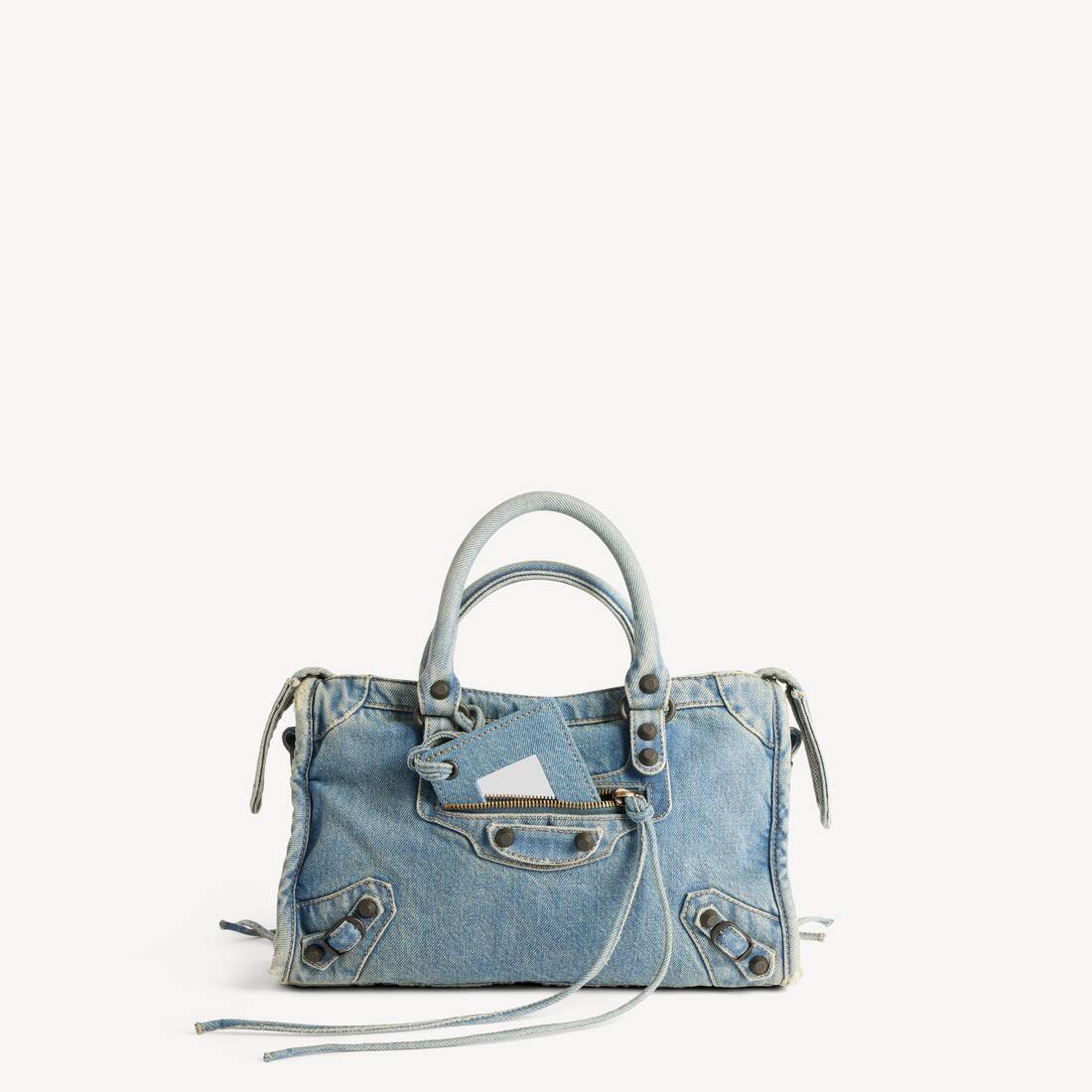 Bolso Le City Pequeño de tejido vaquero efecto lavado azul, elemento de latón