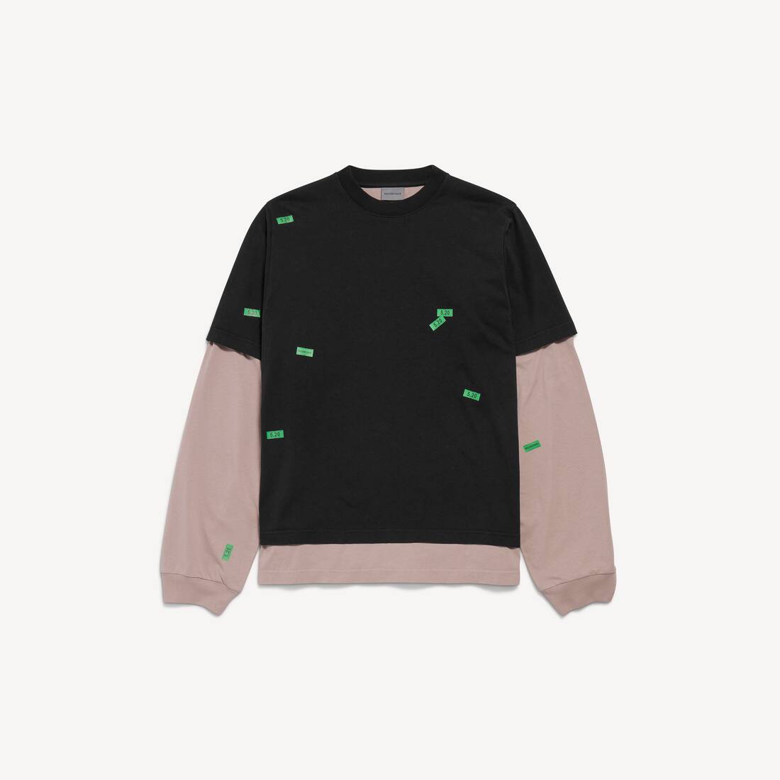 • Construcción híbrida: camiseta de manga corta sobre una camiseta de manga larga