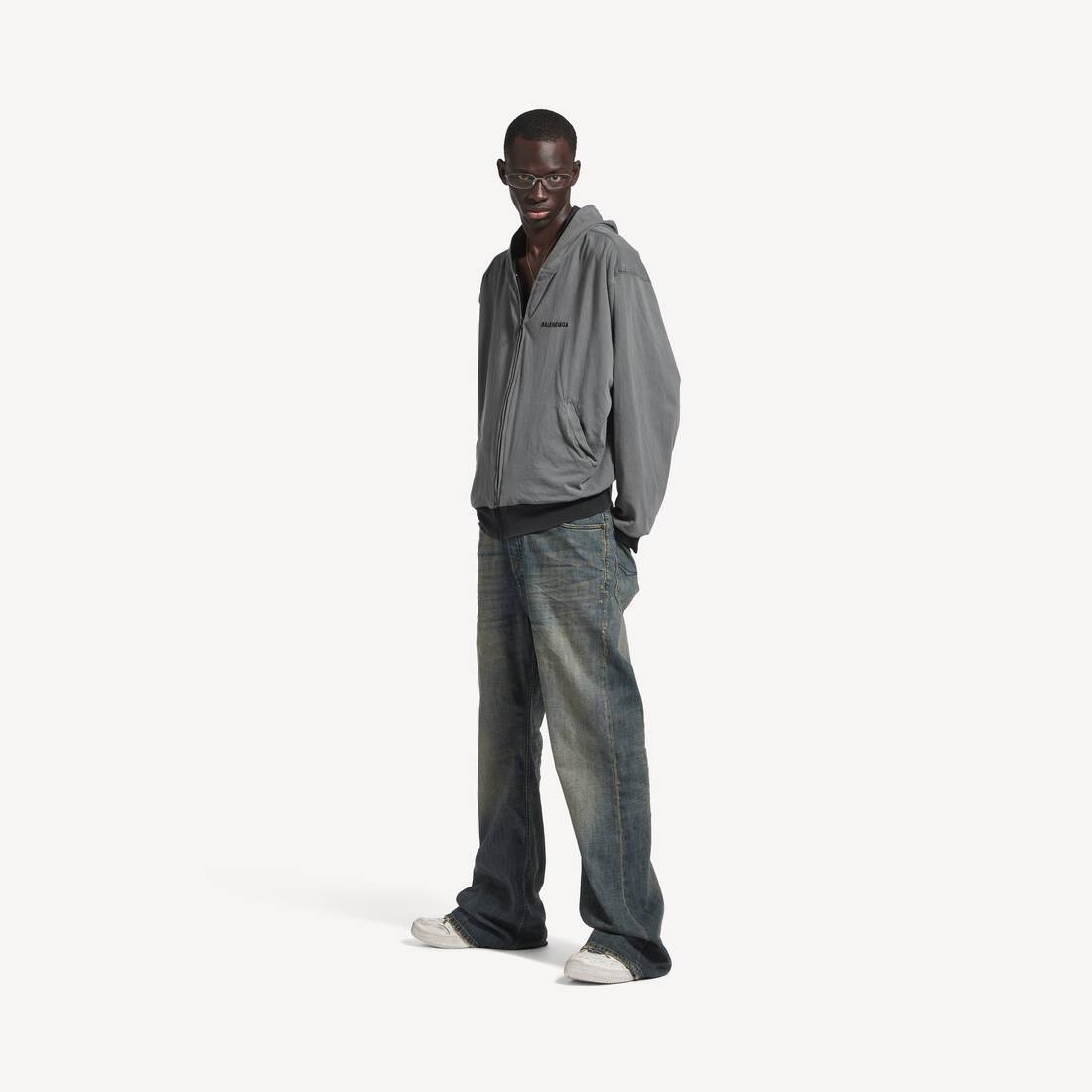 Hoodie Con Cremallera Reversible Balenciaga Back para Hombre en Gris/negro Descolorido