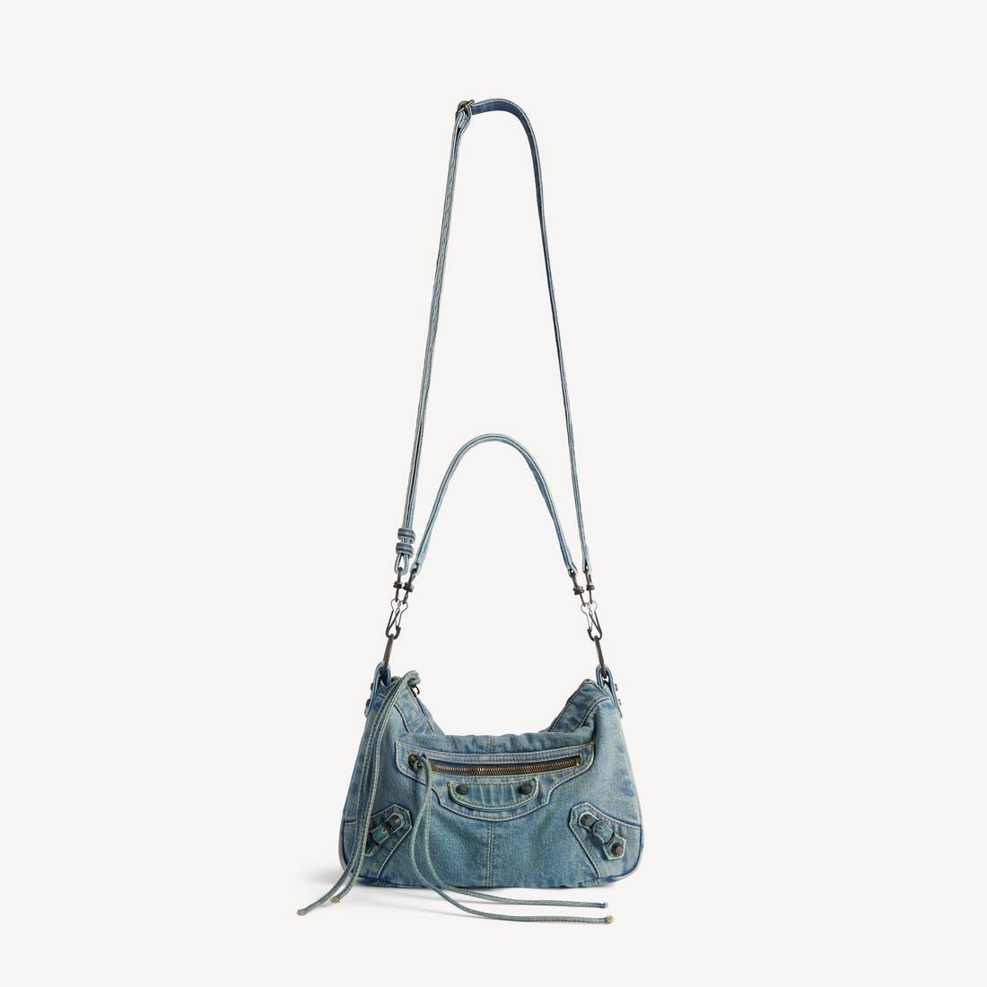 Le City Moto Pequeño de tejido vaquero efecto lavado azul, elemento de latón