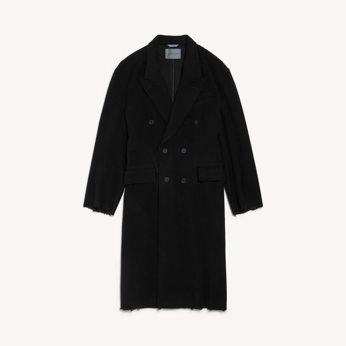 Manteau À Bords Bruts en cady de laine brossée noire