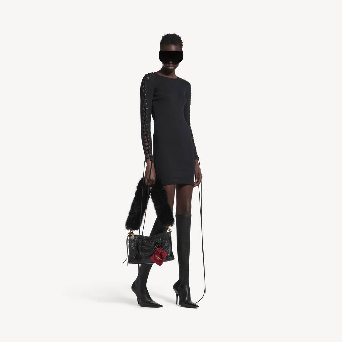 Abito A Maniche Lunghe Con Lacci da Donna in Nero