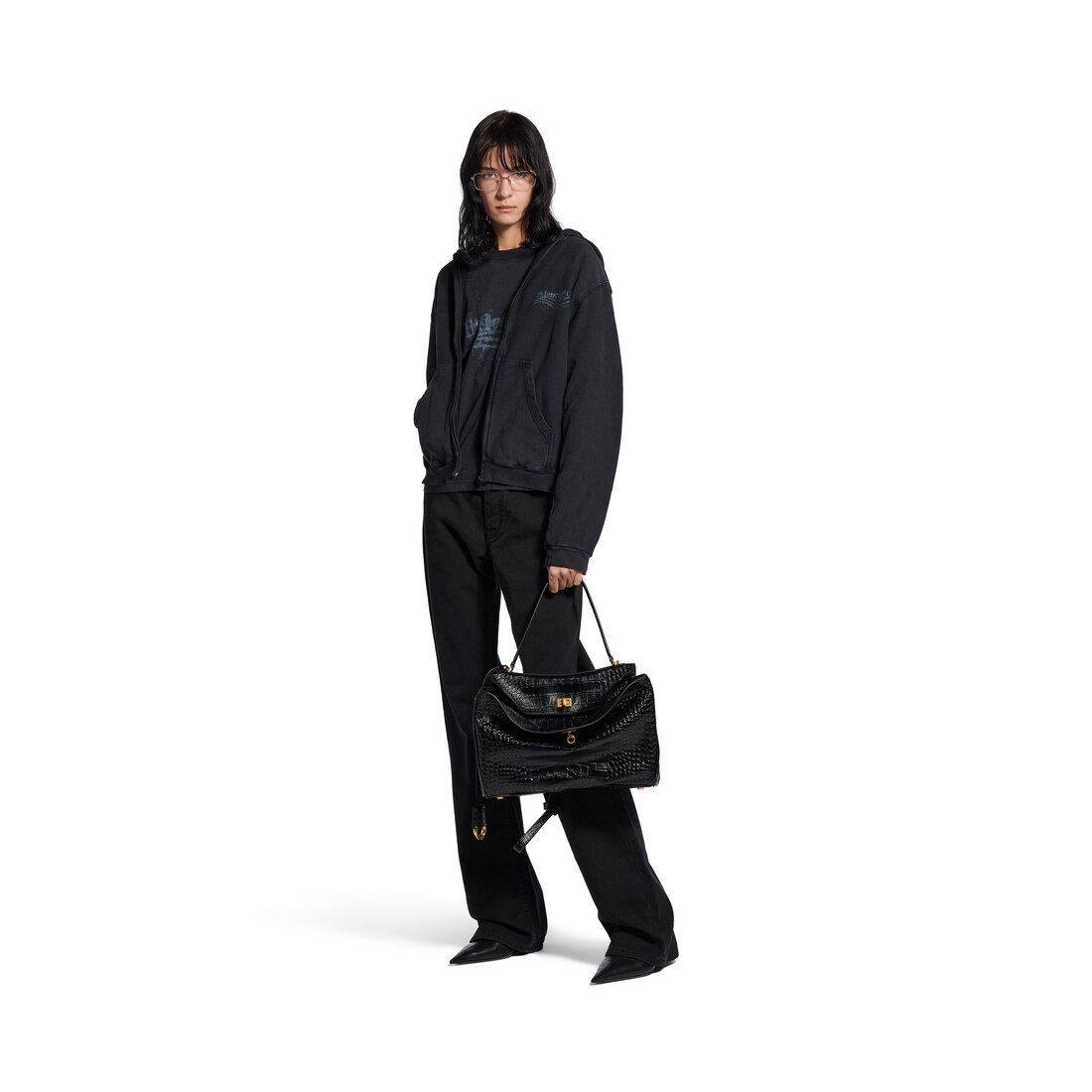Hoodie Con Zip Washed Crayon Political Regular Fit da Donna in Nero Sbiadito