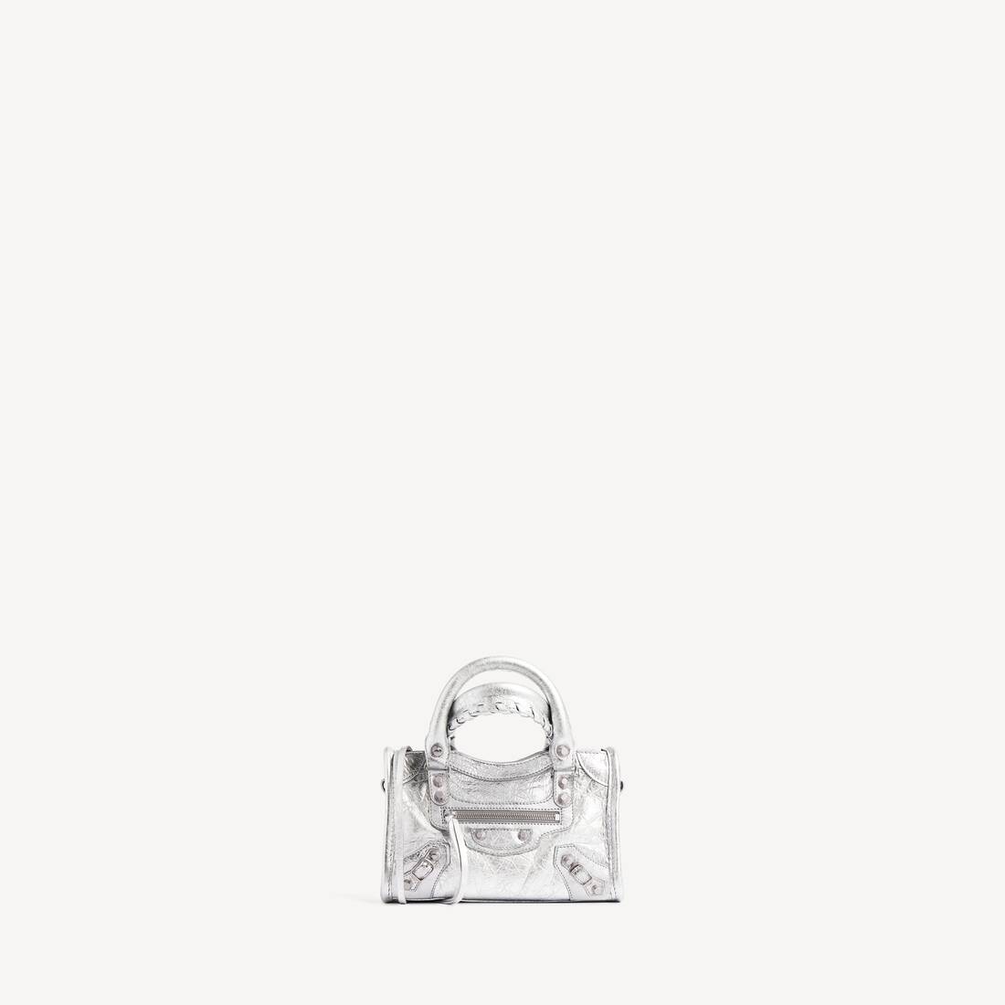 실버 메탈라이즈드 아레나 램스킨 소재의 르 시티 백 나노, 샤이니 실버 장식