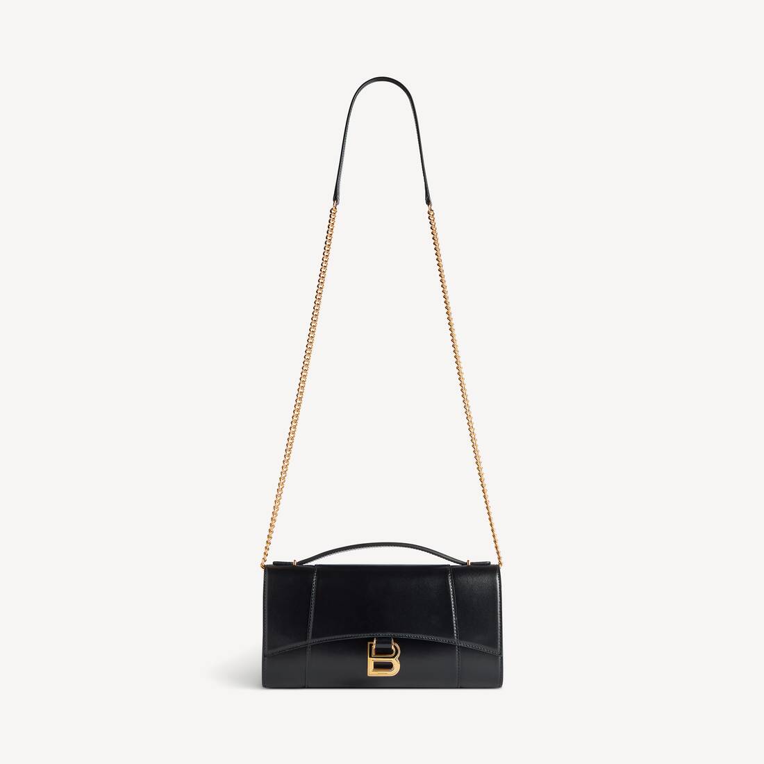 블랙 샤이니 박스 카프스킨 소재의 아워글래스 체인 포셰트, 샤이니 골드 장식