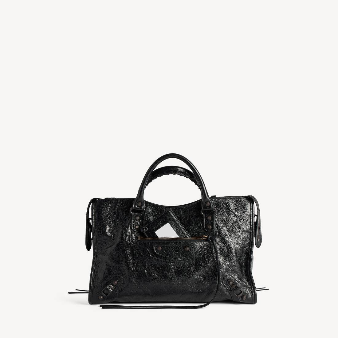 This Balenciaga product is made using genuine leather. It is impossible to guarantee that its appearance will remain unchanged with standard use. Marks or irregularities may stand out; however, they should not be seen as flaws as they are inherent to the materials and techniques used.