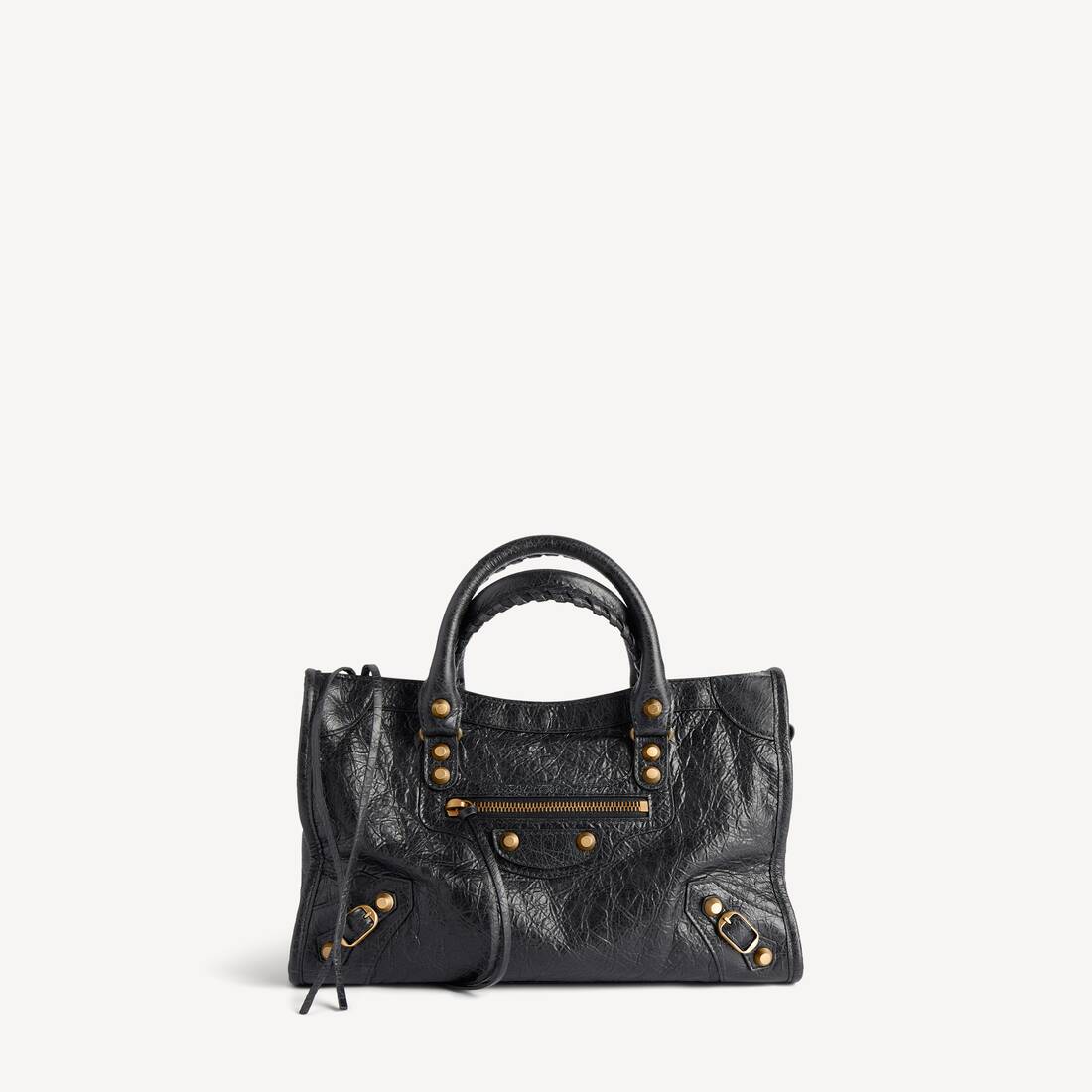 (Imposto incluído)Bolsa Le City Pequena em couro de cordeiro Arena preto, acabamentos em dourado envelhecido