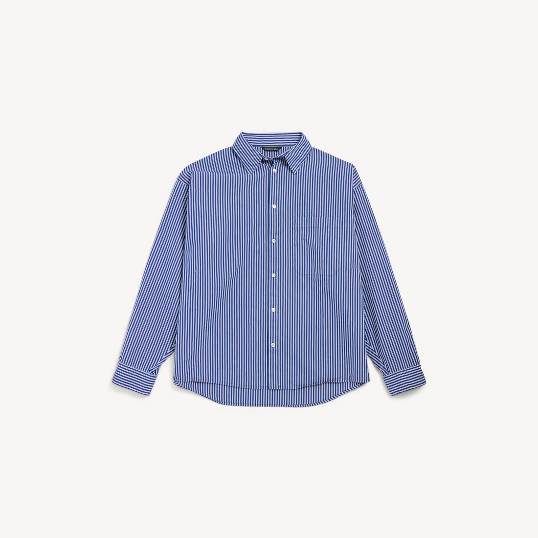 (Imposto incluído)Camisa Oversized em popeline de algodão listrado azul-marinho e branco